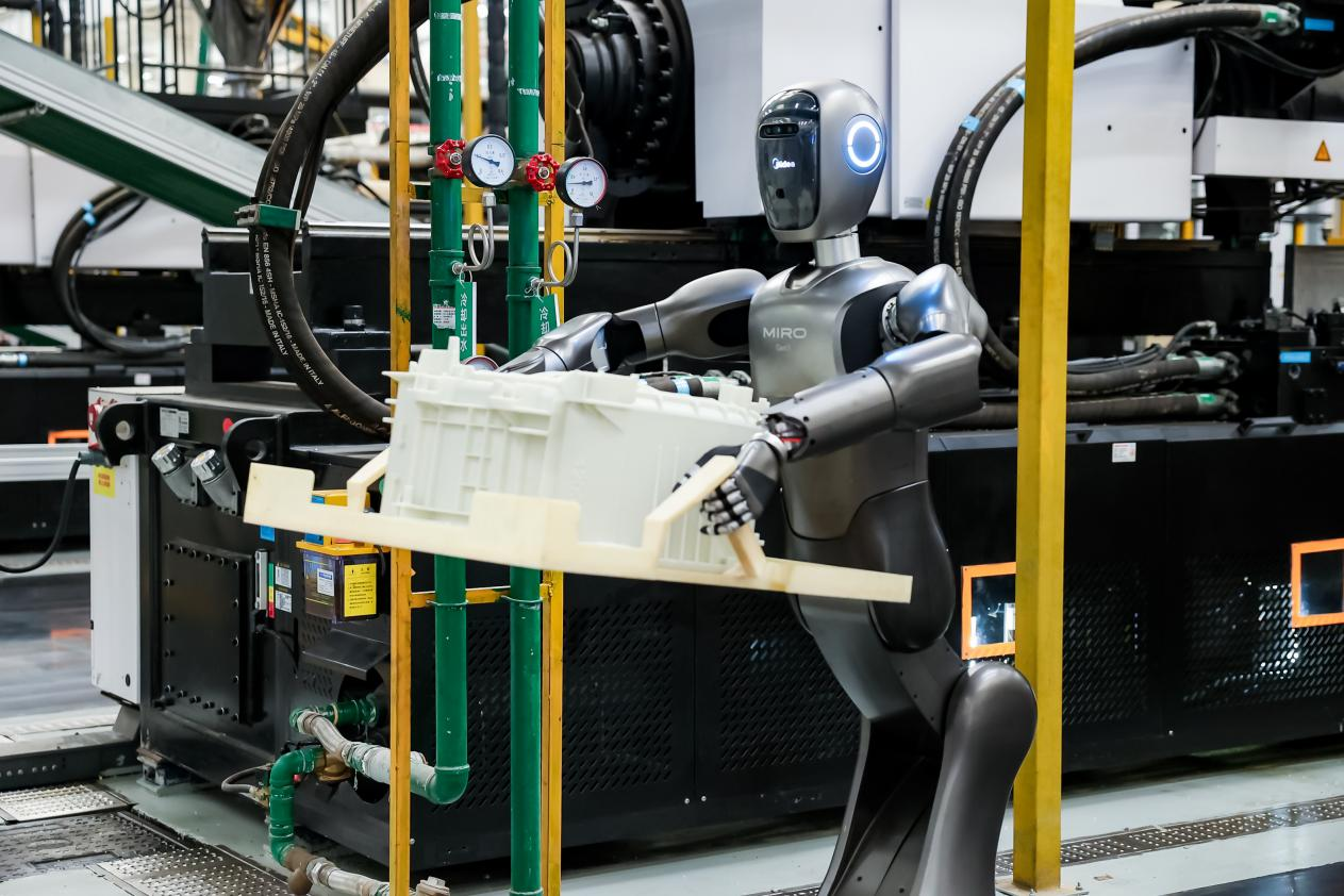 除了智能體工廠的探索,美的集團依托自有制造工廠與產線,實現人形機器人從實驗室到現場應用的跨越。在注塑車間,人形機器人完成階段性調試,并與工廠業務系統打通,形成業務閉環。