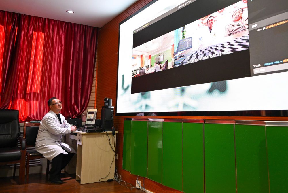 2024年12月17日,在青海省海南藏族自治州共和縣中醫院,醫生與鄉鎮衛生院連線進行遠程會診。新華社記者 張龍 攝
