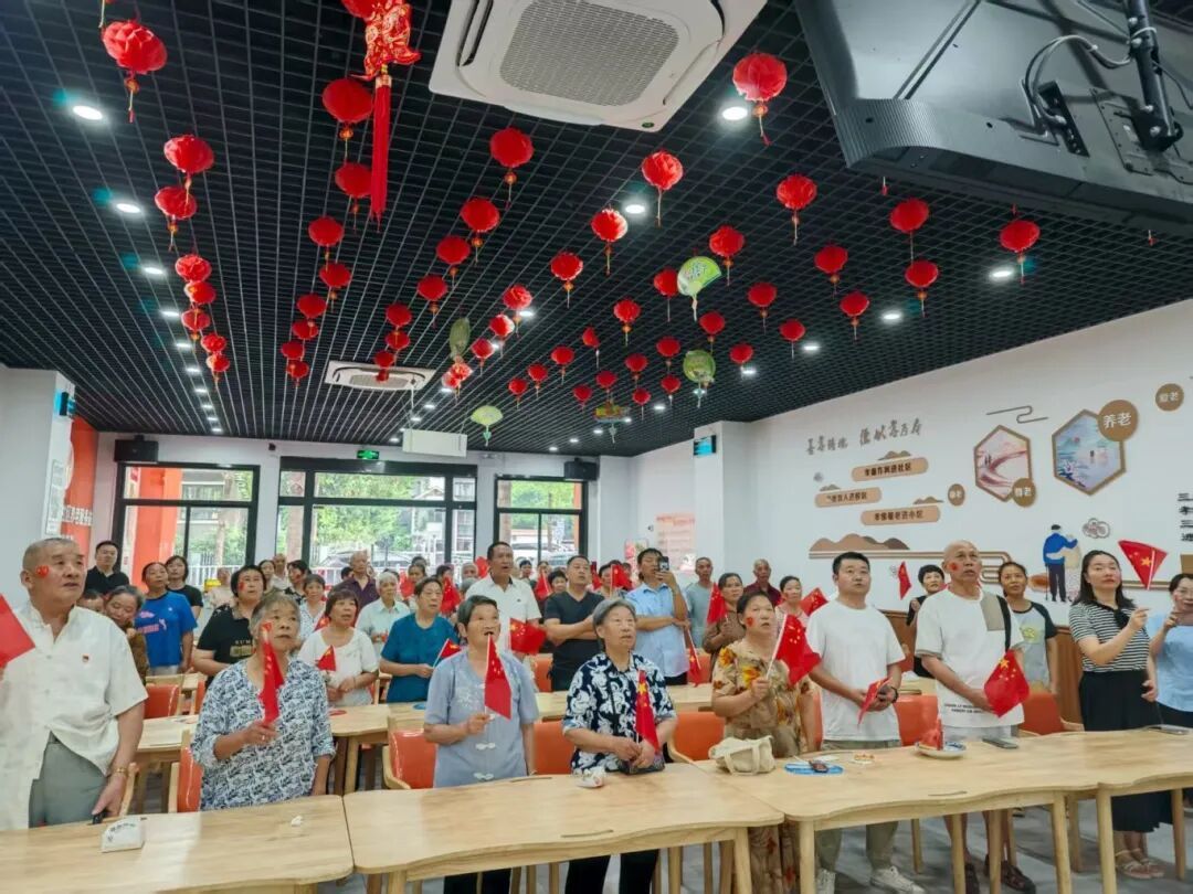 當莊嚴的國歌聲在服務站活動室內響起,全體在場居民自發肅立,搖起手中的紅旗,齊聲高唱國歌,目光緊緊鎖定屏幕上天安門廣場的盛大場面。隨著受閱部隊一個個方陣邁著鏗鏘有力、整齊劃一的步伐走過,新型武器裝備依次亮相,天空梯隊呼嘯而過,活動現場不時爆發出陣陣熱烈的掌聲和由衷的贊嘆聲。