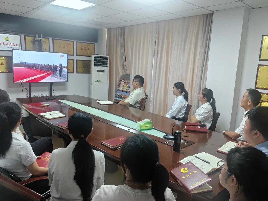 撫州高新區投資促進局集中收聽收看大會實況直播。大家神情專注,共同感受偉大抗戰精神,汲取奮進力量。