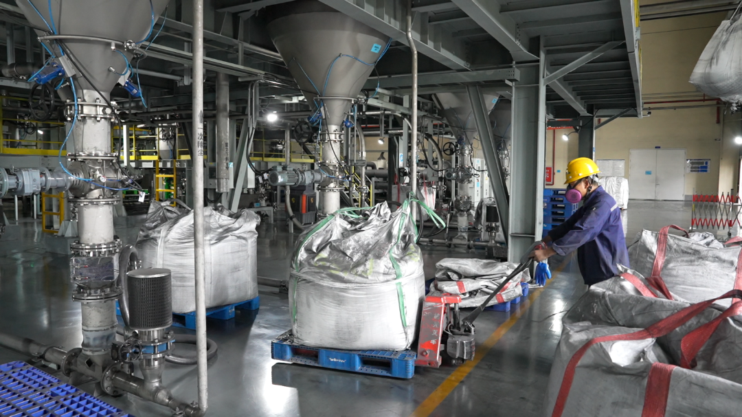在海創尚緯倉庫,工人正將一批人造石墨負極材料產品裝車,這批產品將陸續發往全國各地的客戶手中。距離試生產僅僅不到一年時間,如今海創尚緯各產線全線貫通,企業產能正穩步爬坡并有效發揮。