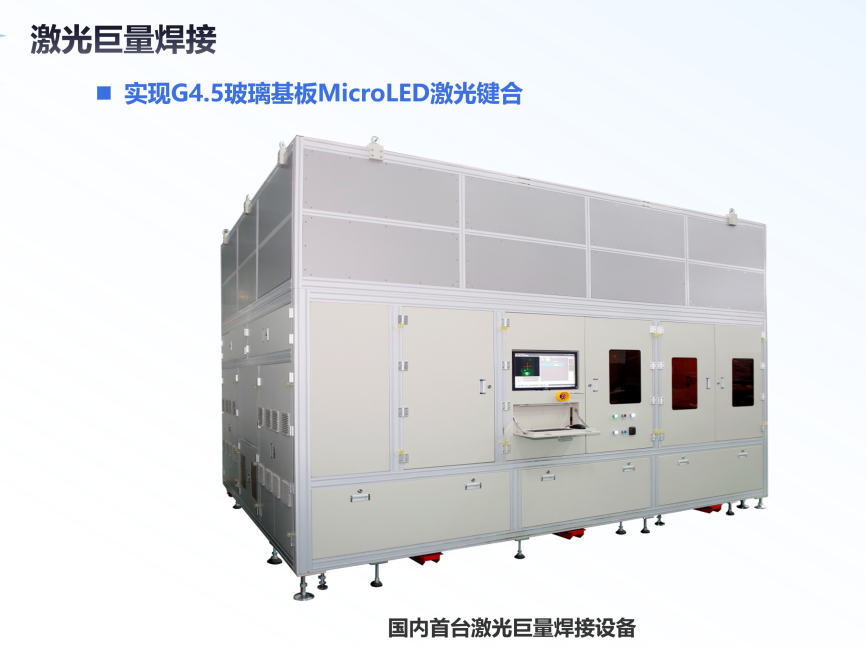 通過技術創新有效解決巨量轉移過程中的波長一致性、精度與良率兼容問題,并成功突破G4.5玻璃基大幅面焊接問題等痛點和難點。