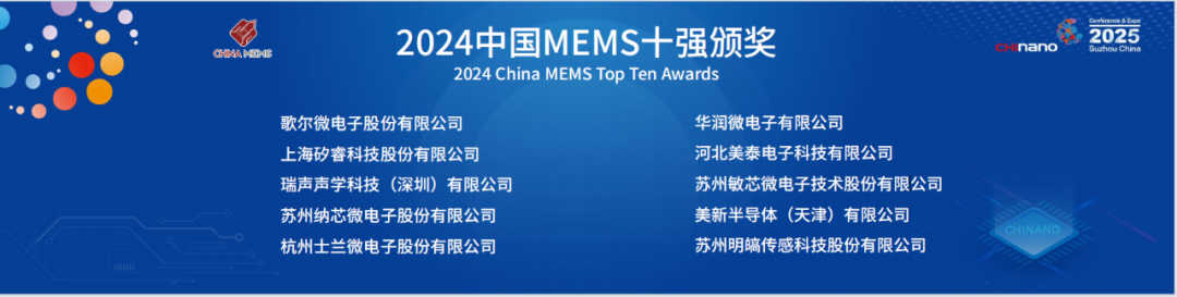 近日,China MEMS 2025第六屆中國MEMS制造大會暨微納制造與傳感器展覽會在蘇州國際博覽中心舉行。在“中國MEMS十強”頒獎環節,無錫高新區企業華潤微電子有限公司再度登榜,用硬核實力詮釋了中國MEMS領軍者的標桿力量。