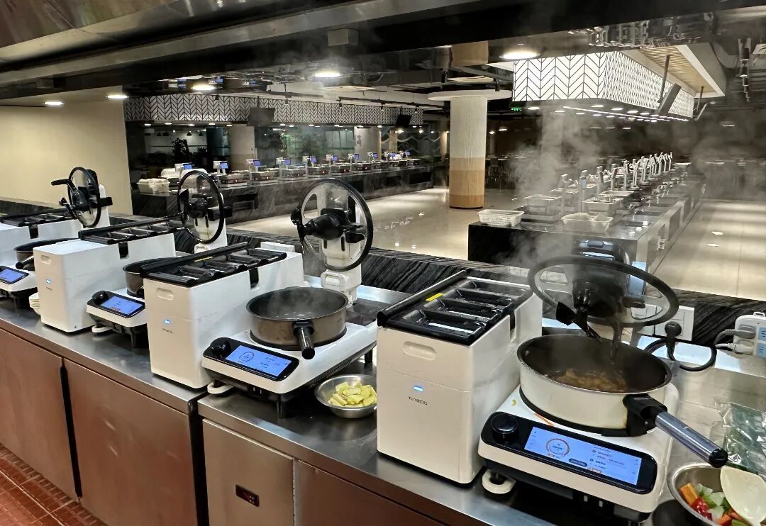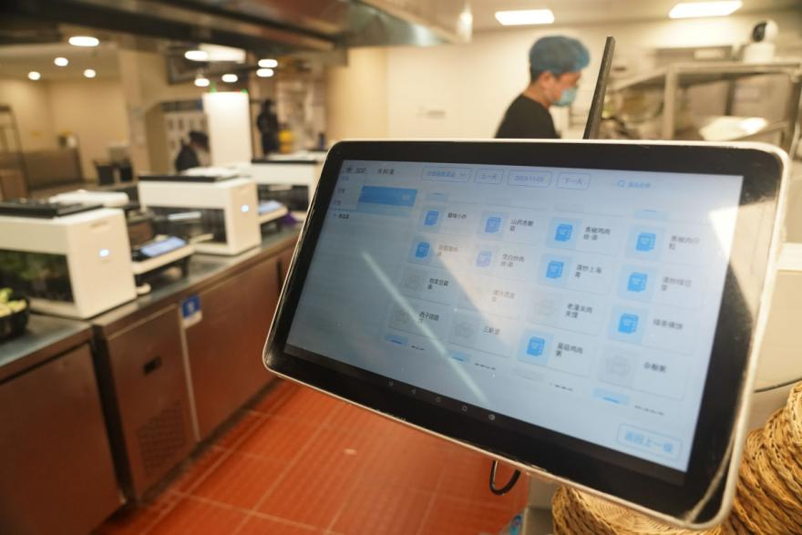 在點餐區就能看到炒菜機的運行場景,翻炒、調味一氣呵成?!案鎰e傳統大鍋菜模式,每種菜品都經過無數次嘗試后確定制作流程和用料標準?!笔程秘撠熑送嘎?,“4臺炒菜機能搞定300人餐食,引入智能設備進行加熱炒制,能更好地鎖住食物營養,確保菜品口味?!?/p>
