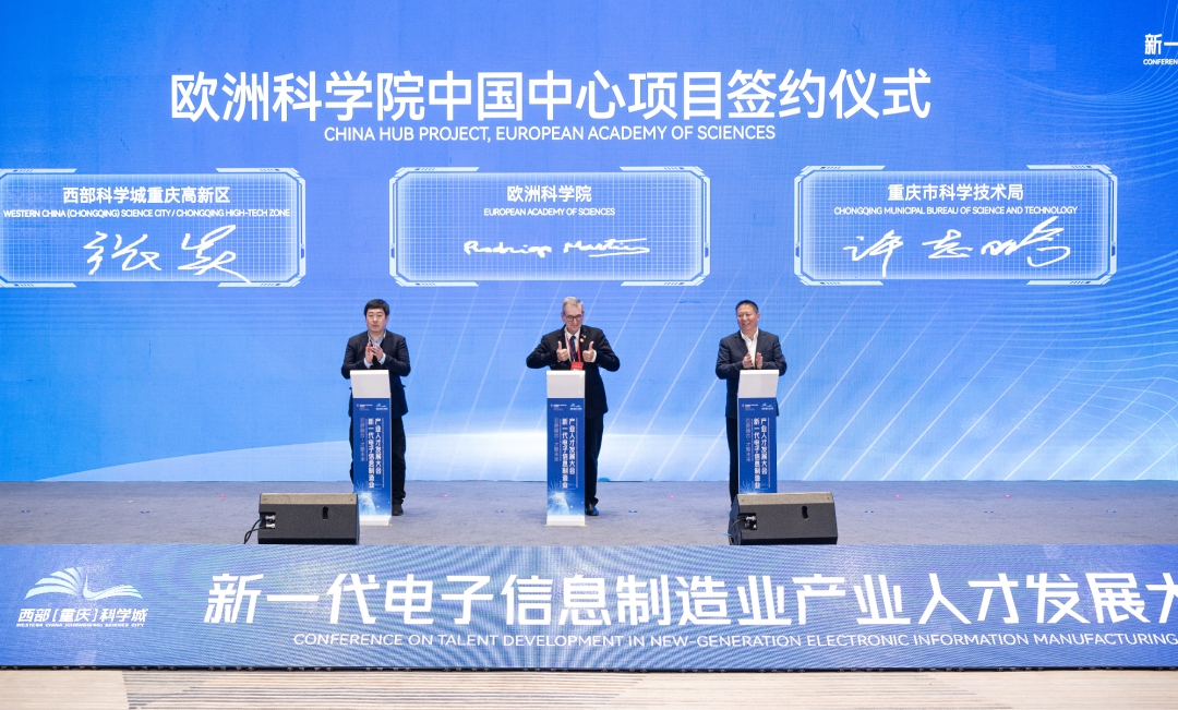 大會現場簽約成果豐碩,多項合作落地見效。歐洲科學院、重慶市科學技術局、西部科學城重慶高新區管委會就歐洲科學院中國中心項目正式簽約,標志著重慶在國際人才交流與技術合作領域邁出重要步伐。歐洲科學院作為具有世界影響力的科學院,擬在重慶市科學技術局的支持下,在西部科學城重慶高新區設立歐洲科學院中國中心。該中心將在促進中歐人才交流和技術轉化,加速中歐在生物傳感、智能終端、基礎材料等領域相互交融,助推相關產業鏈快速應用發展,實現中歐雙邊項目從研發到成果轉化的良性循環。