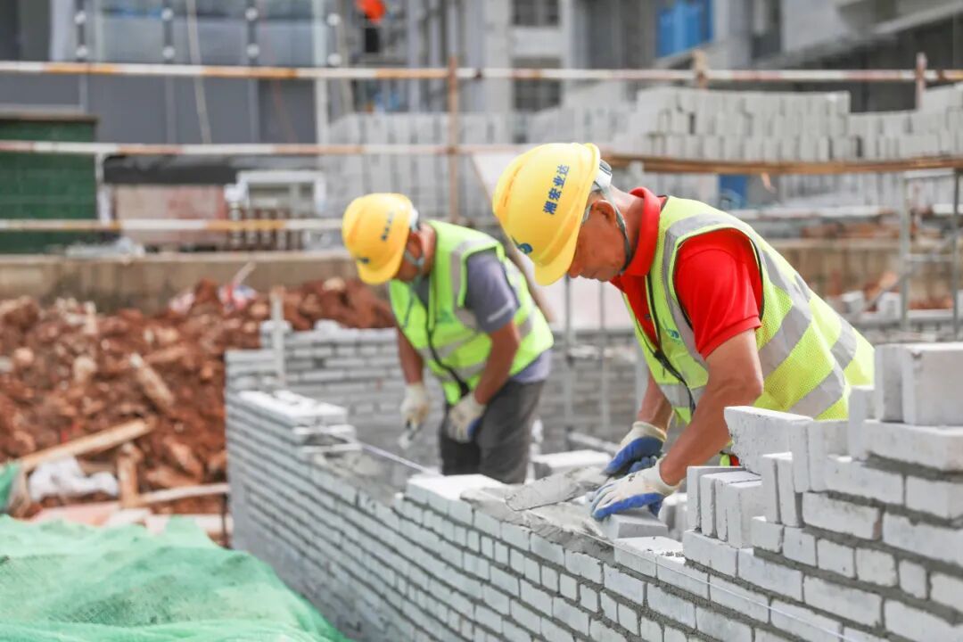 在項目建設現場,多輛登高車、挖掘機等機械來回作業,180余名工人在各個作業面上施工,正緊鑼密鼓地進行玻璃幕墻、室內精裝修、園林綠化等工作,一派繁忙。自項目正式建設以來,核心團隊堅持“節假日不停工”錨定目標忙生產,結合項目特點,樹立快速建造、優質履約的理念,認真編制各種施工方案,堅持設計引領、技術先行,使得項目整體進度、施工質量、文明施工等全處于受控狀態。