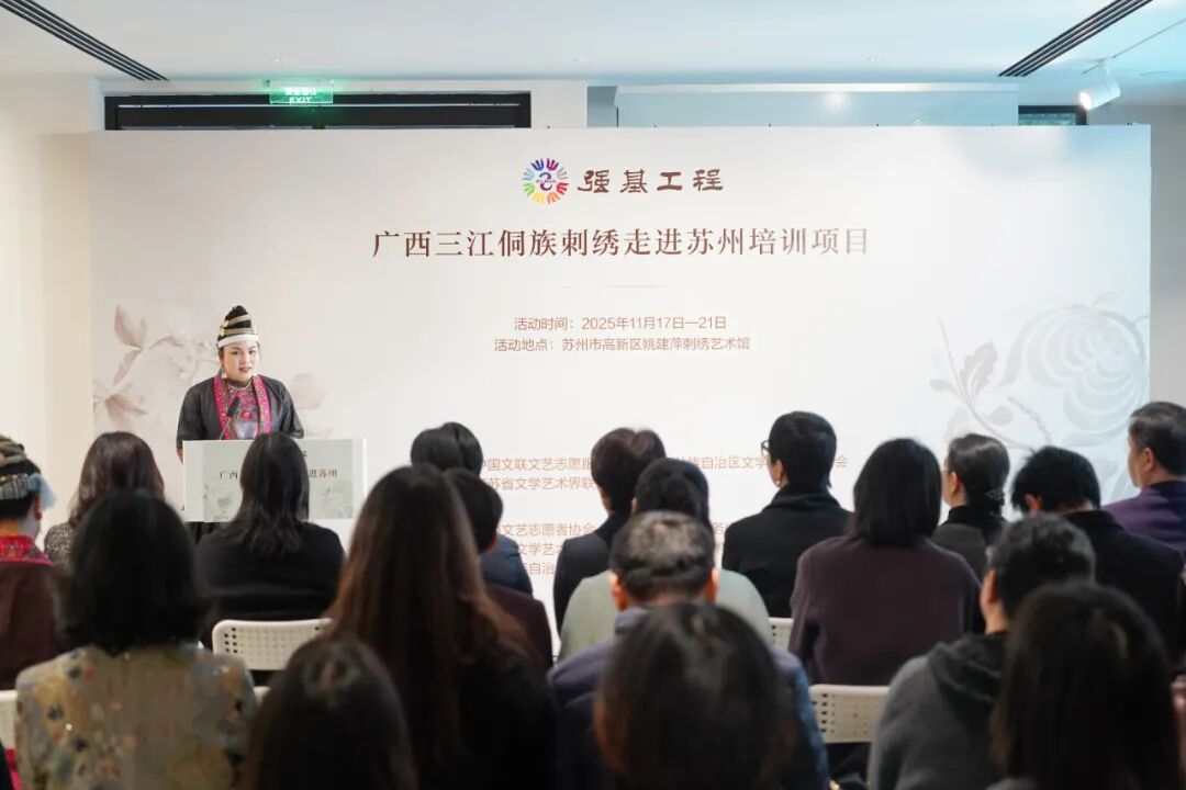 11月18日,“強(qiáng)基工程——廣西三江侗族刺繡走進(jìn)蘇州”培訓(xùn)項目在蘇州高新區(qū)啟動,活動以刺繡為紐帶,搭建起兩地民族民間文藝互學(xué)互鑒、共融共生的橋梁。