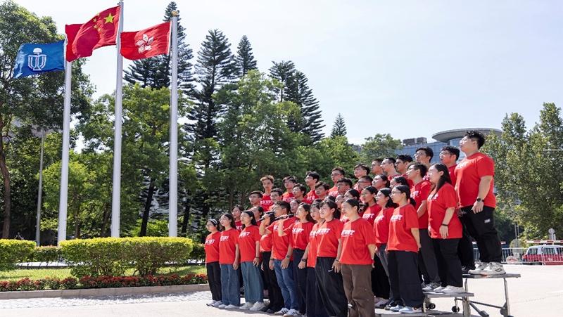 “中國紅”閃耀在全港青少年的心中。舉行國慶升旗儀式,近年來已成為香港眾多大中小學的慣例。在香港科技大學,400余名師生在儀式后齊聲高唱《我和我的祖國》,2萬多人在線觀看并點贊。