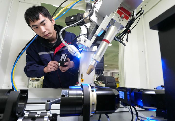 2025年1月7日,浙江省紹興市上虞區浙江創新激光設備有限公司技術人員在調試四軸聯動工作臺激光焊接機。近年來,紹興市上虞區積極發展新質生產力,專精特新企業培育成效顯著,有效助力經濟發展。新華社記者 翁忻旸 攝