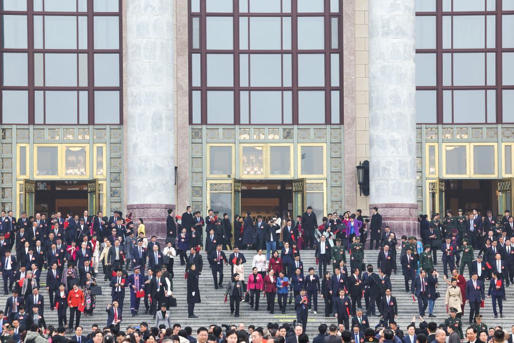 3月11日,十四屆全國人大三次會議在北京人民大會堂舉行閉幕會。這是閉幕會后,代表們走出會場。