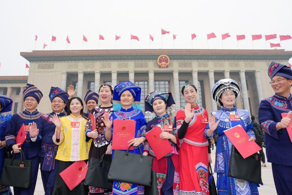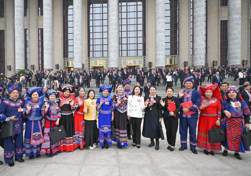 3月11日,十四屆全國人大三次會議在北京人民大會堂舉行閉幕會。這是代表們在合影。