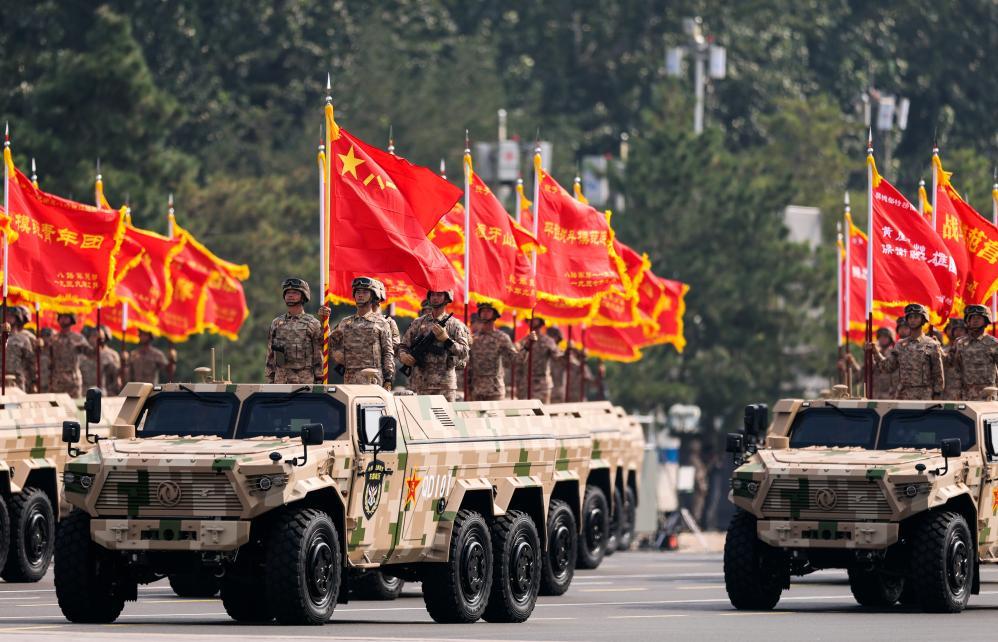 9月3日,紀念中國人民抗日戰爭暨世界反法西斯戰爭勝利80周年大會在北京隆重舉行。這是戰旗方隊接受檢閱。新華社記者 張鋮 攝