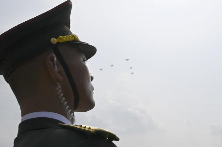 這是一支聯合的力量。空中受閱梯隊由陸、海、空三個軍種29型飛機編成。